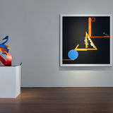 The self-taught late British artist Edward Dutkiewicz (1961-2007) explored exuberant colour and energetic compositions within his too-brief practice. Dutkiewicz was diagnosed with multiple sclerosis at age twenty-one and created his work from his painted wheelchair, from which he embodied ambitious storytelling and bold image-making. Dancer 5, 1994 is part of a series of sculptures depicting an abstract figure, constructed from an arrangement of orange oval shapes, contrasted with red and blue curved lines reminiscent of moving limbs. The rhythmic form conveys a sense that the figure is in constant motion, with repeated shapes throughout the sculpture. There is an ambiguity of whether the dancer is at the beginning, middle, or end of their performance, creating a timeless cycle to the piece.