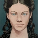 James specialises in portraits, mostly of unknown young women that originate from found photographs and others taken by the artist. The awkwardness of the photographic moment is crucial to the painful, elegiac quality of the paintings.