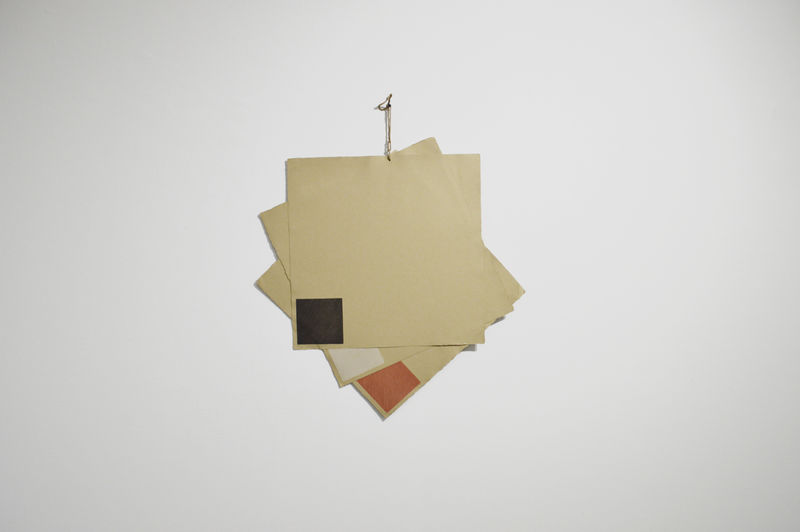 Balanced at angles, the paintings were determined by their own centre of gravity. The strings hanging from the canvases present a painterly language of brush strokes and drips, accentuating also the pull of gravity and the relationship between the canvas and its place among the forces of nature in the world around us. As Barbara Rose has said: “Inevitably they echo the verticality of man’s own gravity-determined stance… These consistent allusions to the human condition prove that abstract art is not necessarily divorced from man’s experience.”