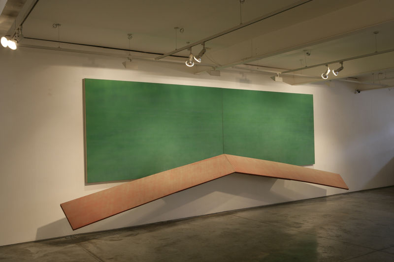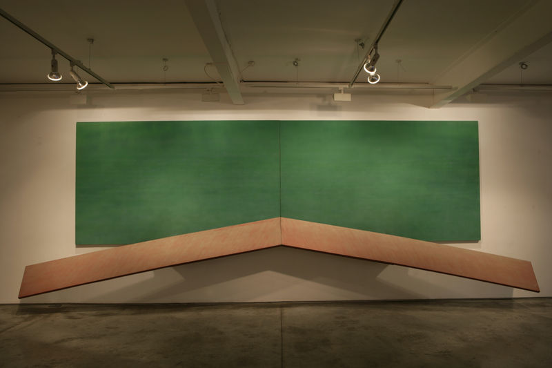 The paintings on show at Flowers East are a fine example of Smith's originality. They date from 1970-71, and, as the artist explains, 'are the last of the three-dimensional paintings that were started in 1962-63. They are called the Butterfly Paintings because some have these double planks coming out from the bottom centre. The supports were made by an excellent carpentry firm in Bath. They are, however, very heavy, and that encouraged me to change to the lightKiteformat that occupied me for the next decade or so'.