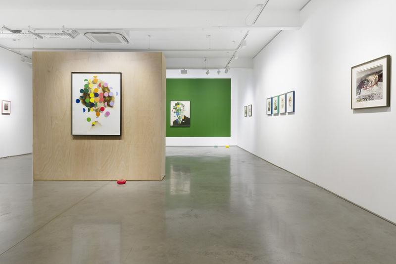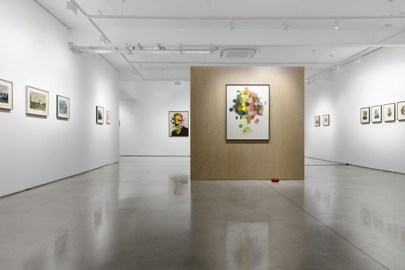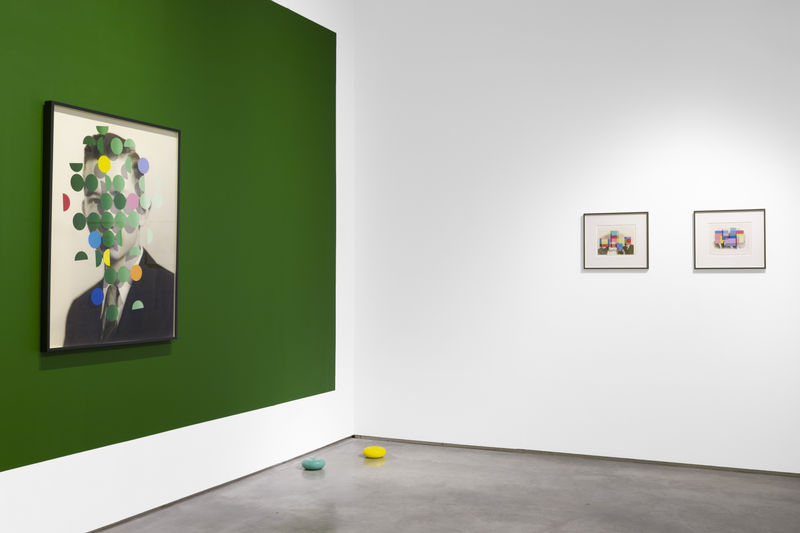 Recurring patterns, spots, kaleidoscopes, Venn diagrams, harlequins, flower heads, and cages are formally balanced with the existing compositions in response to imagined internal dialogues.