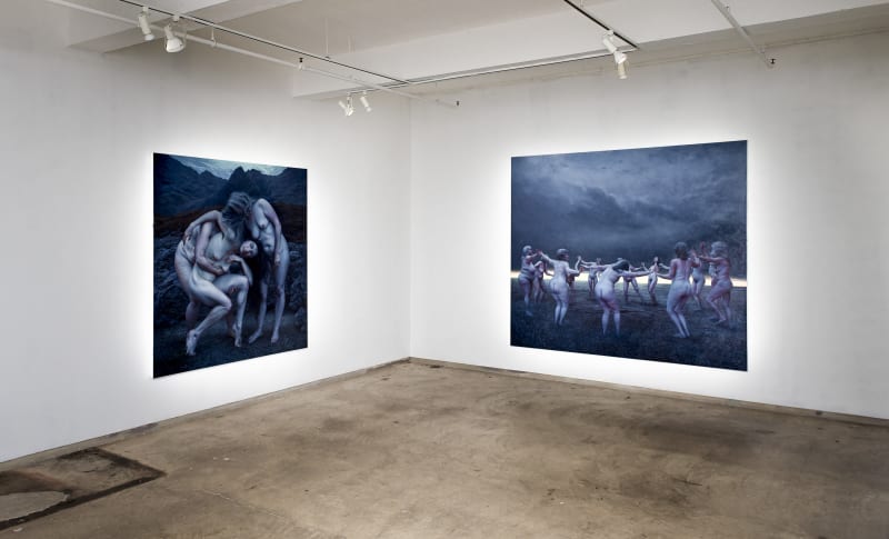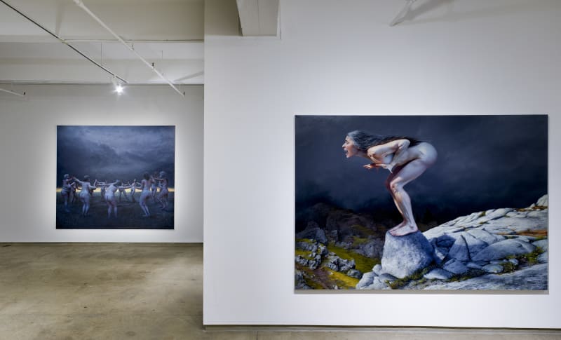 Flowers Galley New York presents a solo exhibition of new paintings by artist Aleah Chapin. What Happens at the Edge focuses on the unified depiction of the human body and the natural environment. In her latest work, Chapin describes a world concerned with ‘in-betweenness and edges’ - from the juxtaposition of soft human flesh against the hard contours of cliffs and rockfaces, to the symbolic representation of emotional edges and extremes.