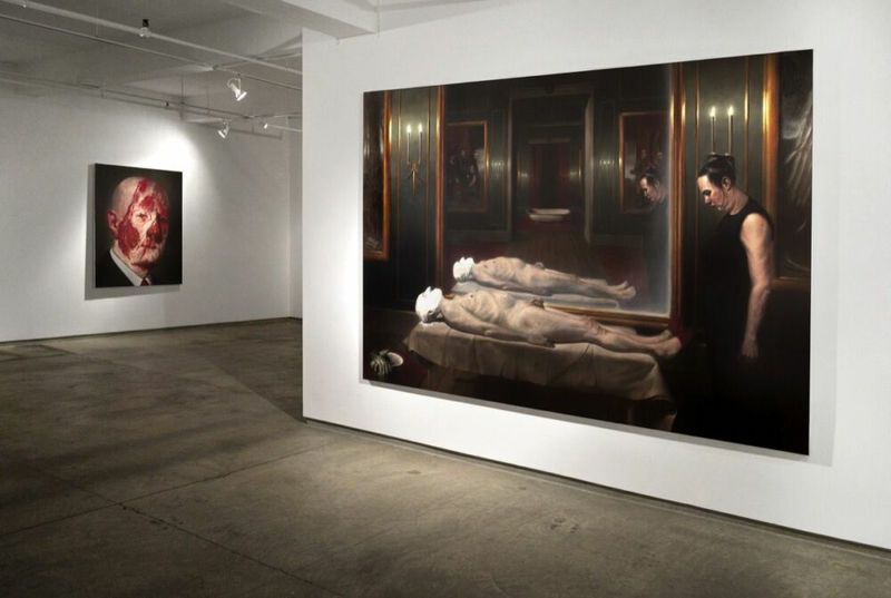 We are pleased to present an exhibition of new works by Ken Currie. Following on from his recent show at the Scottish National Portrait Gallery, these paintings continue to examine the relationship between painting, power and portraiture. This exhibition explores, among other things, the inherent absurdity of the human situation and has drawn influence from the Spanish Masters Velzquez and Goya. Both of these painters worked in the Royal Courts but recognized the vanity, and indeed, idiocy in the rituals and protocols of court life. The figures in Currie's work nod to the icons of the Old Masters, but contain a barely concealed hint of satire of our own contemporary version of court life. In these new paintings Currie examines the universal human desire to transcend mortality and forces the viewer to confront the comic futility of such ambitions. He directs our attention to the dead and dying, and juxtaposes the beautiful with the grotesque. Currie's paintings reveal an imagined world where the boundaries between the rational and the irrational are subtly blurred. In writing on his work he has said: "I want the viewer to be simultaneously attracted and repulsed by my work in the same glance. My aim is to provoke anxiety and discomfort in the act of looking... to hold their gaze then mercilessly unsettle them."