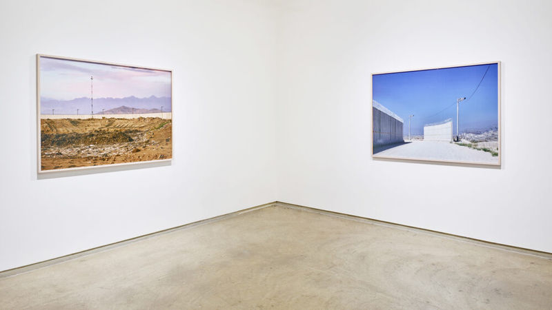 Echoes of the surrounding landscape resonate in Clark’s photographs of spaces within the walls of the base, finding visual rhymes in the craters formed by construction work, peaks of refuse-strewn razor wire and the precisely ordered vistas of military tents. Inside the buildings, the landscape is simulated by murals and artworks, representing another view of Afghanistan. On the walls of a dining facility, a series of paintings signed by an artist named ‘Majeed’ portray idealized scenes of mountain passes and lakes, in which Clark questions the influence of Western ideas of romantic or naive painting. Reflecting on the significance of the paintings’ location on an American base, Clark says: “How many tens of thousands of pairs of western eyes have registered the pastoral peace of these mountainscapes? Has anyone considered what they say of the country they are playing a part in occupying?”