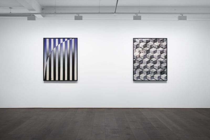 Set within the physical parameters of her 4x5 negatives, Whitaker constructs closed repetitious systems and geometric grids. The screens divide the space of the photograph into distinct pictorial frameworks - representation and abstraction, flatness and dimensionality, patterning and chance. These overlapping visual languages allow the photographs to operate within systems external to them, whether mathematical, musical, digital, or linguistic, granting the photographs agency beyond their status as formal configurations.