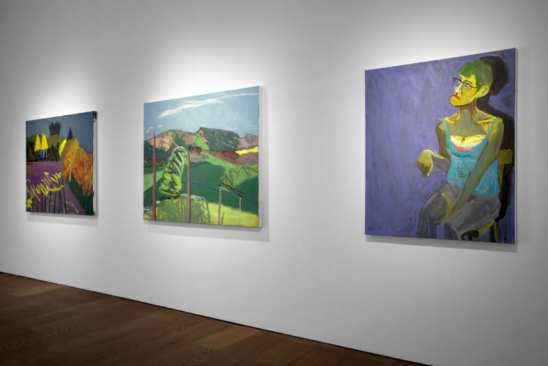 Matthew Collings has said: “Colour textures, colour space, colour pleasure – she puts all the elements together in ways that seem both organised, possessing a strong eye for pattern and arrangement, and raw, possessing a great capacity for taking a mad chance. A colour area can seem like a burn or something searing, not something built or carved. Colour can loom, make the whole picture seem like it’s about to take off, or it can be like explosive charges…” 1
