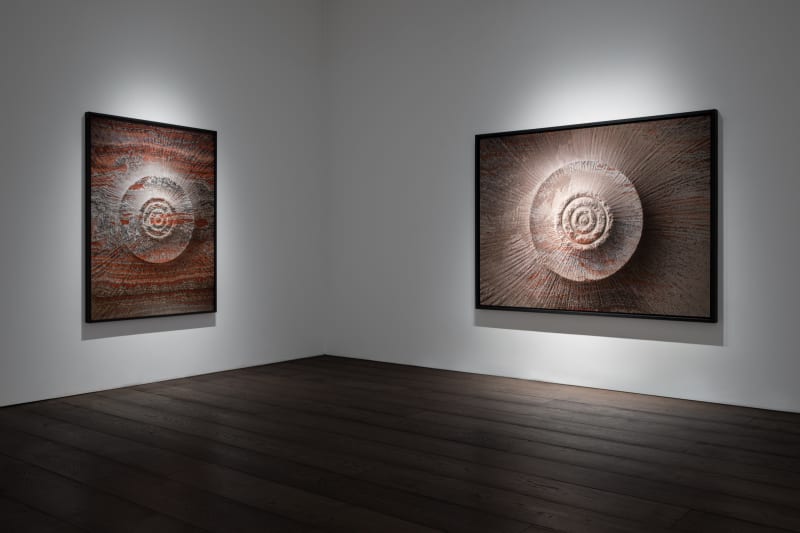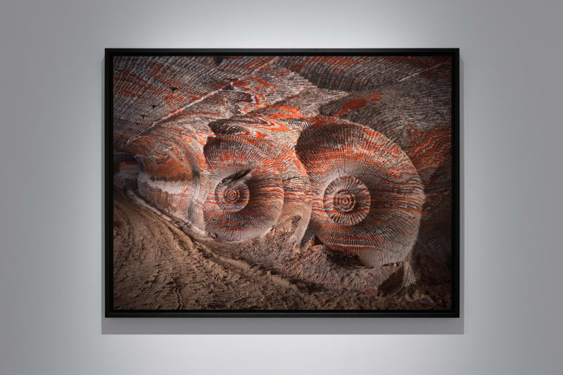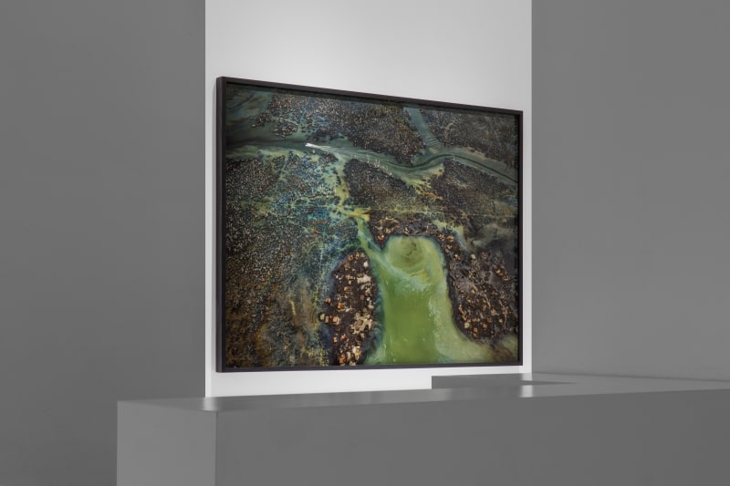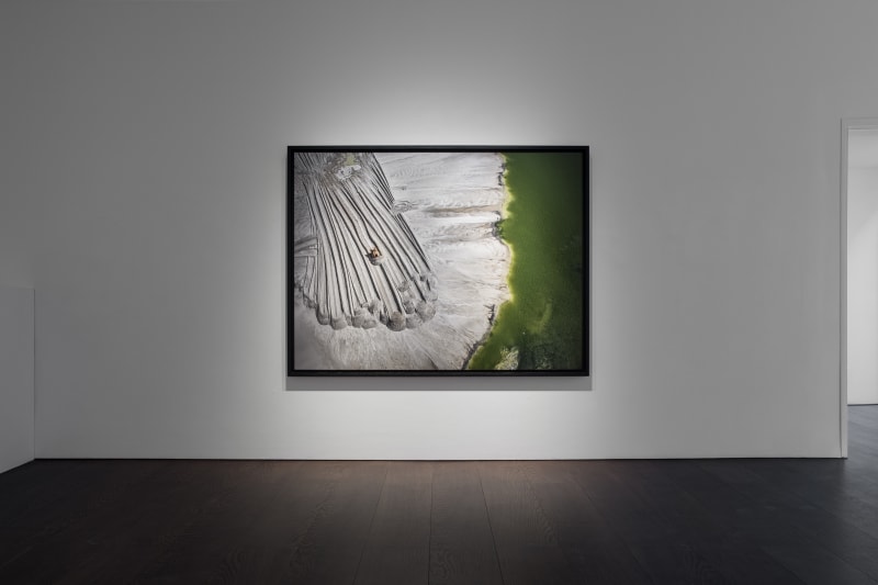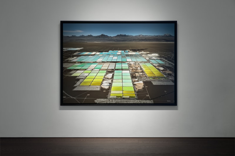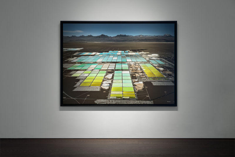 In these photographs, taken from both aerial and subterranean perspectives, and presented at a large scale, the patterns and scars of human-altered landscapes appear to form an abstracted painterly language. From the graduating tonal grids of turquoise and green-gold formed by the expansive lithium extraction ponds on the salt flats of the Atacama desert, to psychedelic fossil-like whorls formed by anthroturbation (human tunnelling) within the potash mines in Russia’s Ural Mountains, they reference the sublime and often surreal qualities of human mark-making.