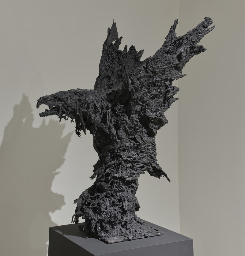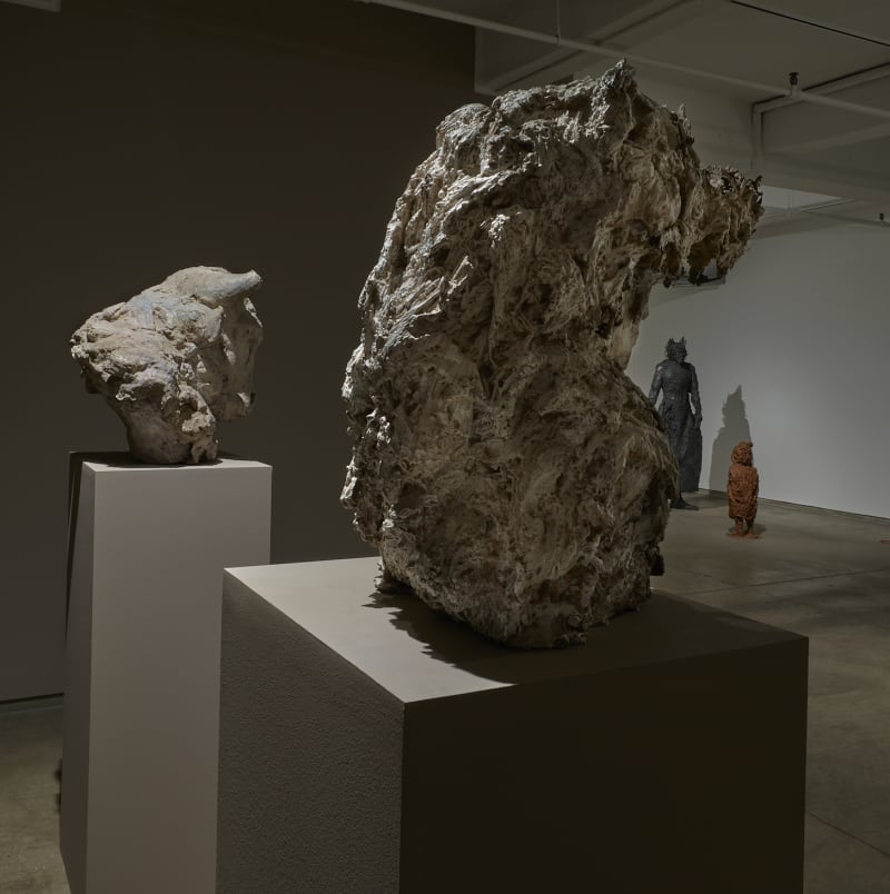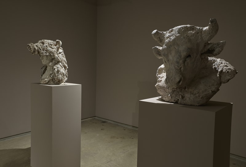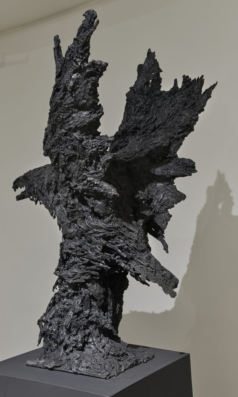 Originally created using a mixture of plaster and straw, the bronze casting process harnesses and preserves the haptic energy of their fragile surfaces, with patinas in earthern, black or white tones, recalling timeless natural substances derived from the earth, such as oil, clay, chalk or lime.