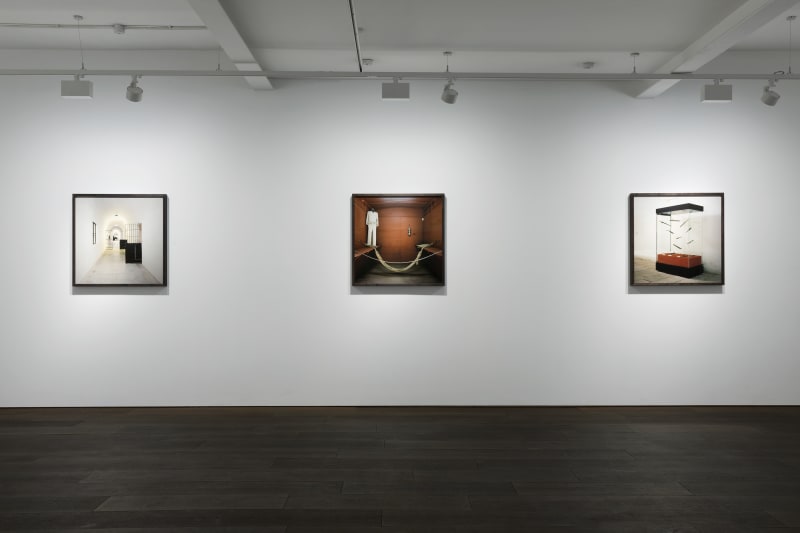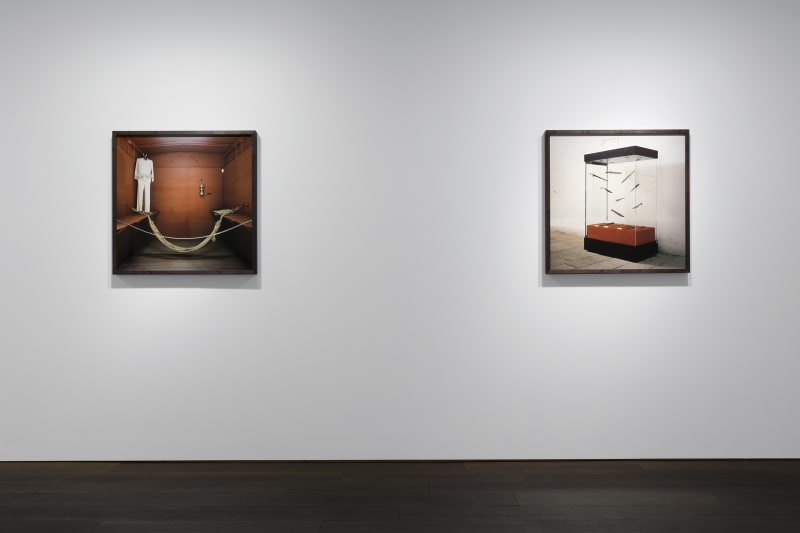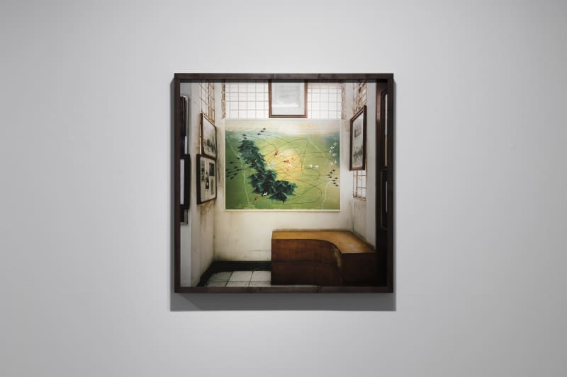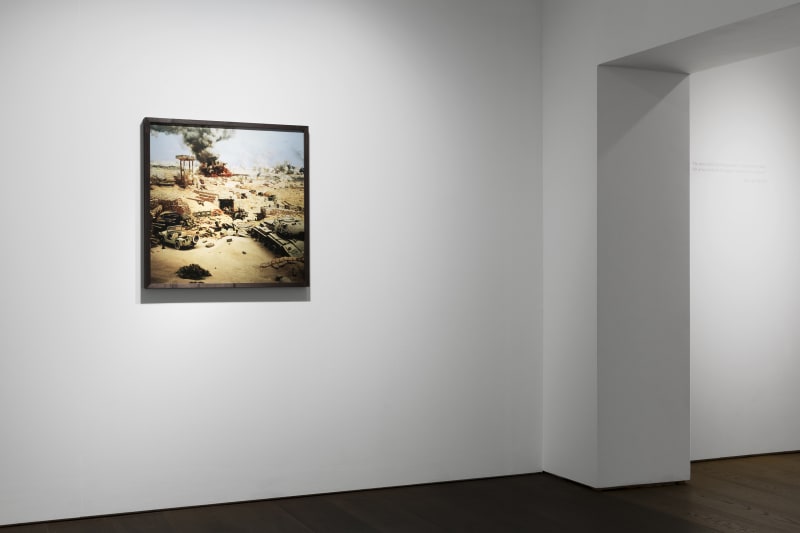 In the essay Travels in Hyperreality, philosopher, historian and aesthetician Umberto Eco argued that the museum diorama is potentially “more vivid, more effective” than the original artefact, achieving an “illusion of absolute reality”.* Larkin’s photographs of dioramas, reduced-scale reproductions, and audio-visual displays reflect these vivid scenes with a distant gaze, highlighting the ambiguous spaces where notions of fact and fiction can fuse, and the harsh reality of conflict can become simplified.