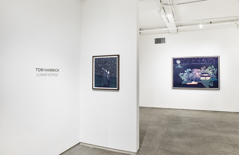 British artist Tom Hammick has described landscape in his work as a metaphor to explore an “imaginary and mythological dreamscape.” Drawing from a wide range of sources, from Japanese woodblock prints to Northern European Romantic painting, utopian Modernism and contemporary cinema, Hammick’s depictions of isolated human dwellings grounded in uncanny dream-like settings summon the uneasy atmosphere of a psychologically-charged thriller, or a dystopian suburban nightmare.