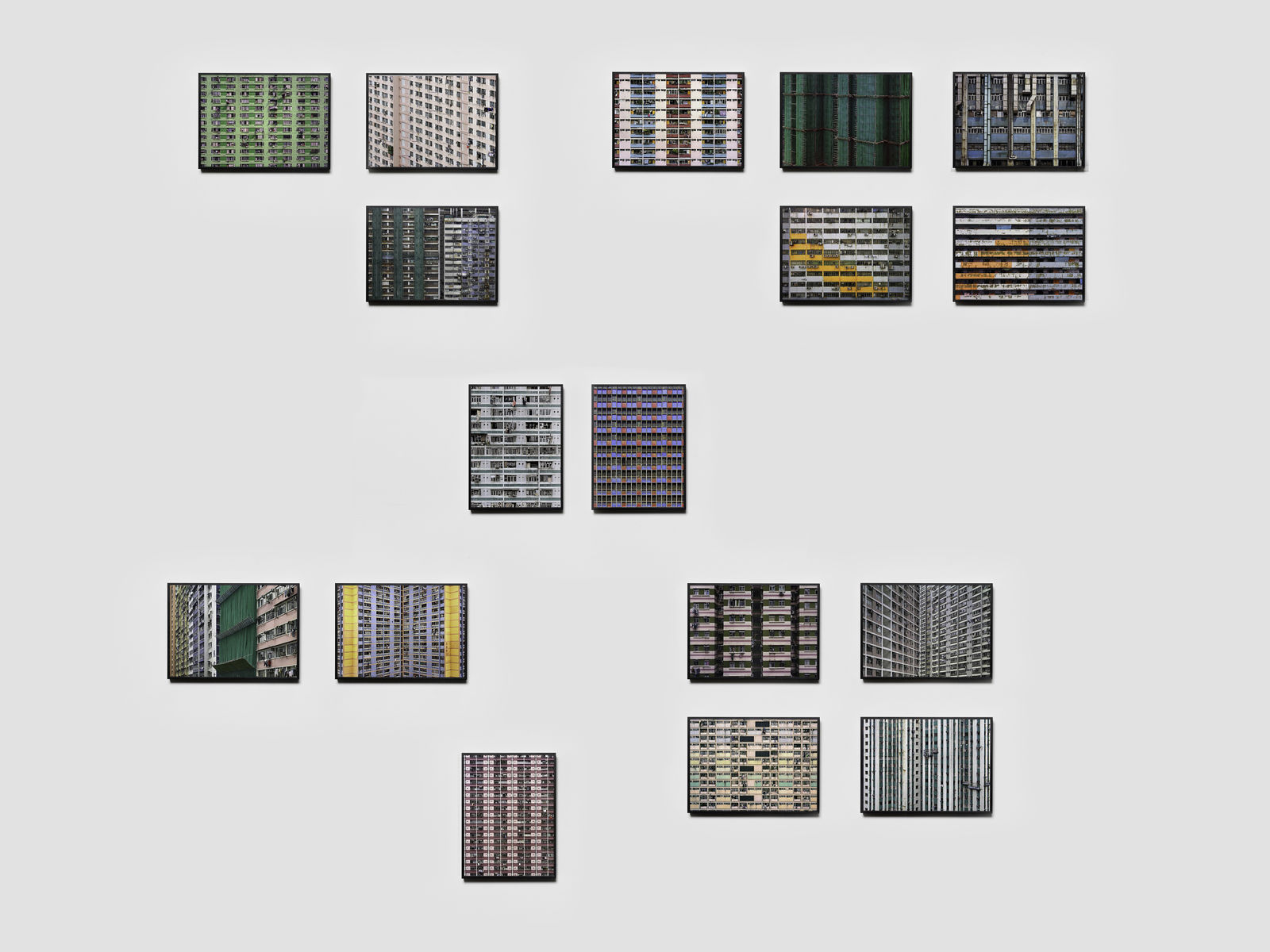 Wolf's Architecture of Density depicts the insatiable growth of Hong Kong’s contemporary urban vistas by excluding any horizon, foreground or background from the frame, in what the artist referred to as ‘No-exit compositions’. Taken from a frontal perspective, the endlessly repeating patterns created by grids of apartment windows, vivid cladding and scaffolding become flattened, abstracted and with an ambiguous sense of scale. Scout Shots acted as studies for Wolf. Taken with a small digital camera when out looking for suitable locations, they formed a digital sketchbook that later evolved into his larger works.